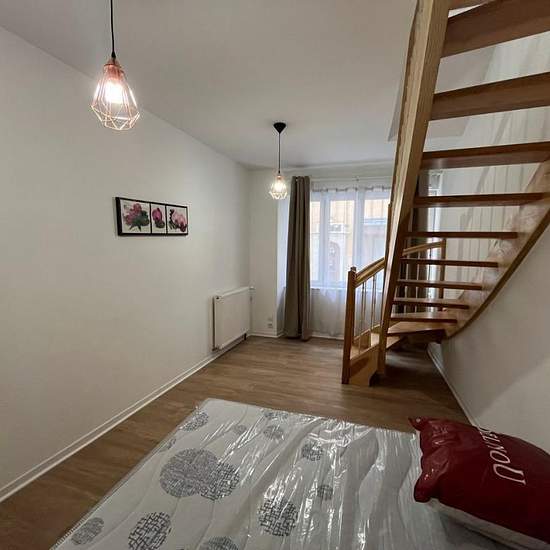 Libre fin décembre 2025. Appartement meublé de type 2 en souplex, situé au centre-ville de Mende, proche de parkings publics. Au premier étage d'une petite copropriété, entièrement rénové, il se compose d'une chambre en souplex, d'une salle d'eau / WC et au premier étage d'un salon et d'une cuisine toute équipée (réfrigérateur, plaque électrique, four, hotte aspirante, machine à laver). Les charges comprennent une provision pour l'eau, l'électricité, les ordures méangères et les communs. Il faut rajouter le chauffage qui est au fioul.(Plus d...