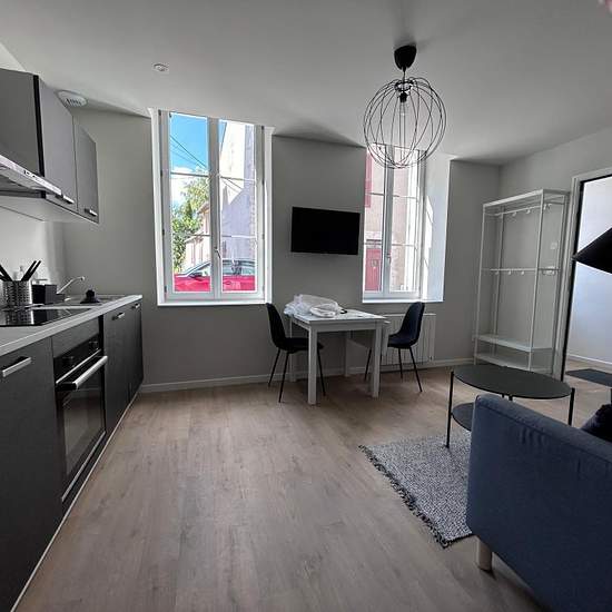 Centre ville de Mer, appartement f2 meublé en rez de chaussée : séjour avec coin cuisine aménagée et équipée (four, plaque, micro onde, lave vaisselle, lave linge, télévision, réfrigérateur, wifi), chambre, salle de bains, toilette, cour fermée. Disponible le 15 décembre 2025 mais possibilité plus tôt.