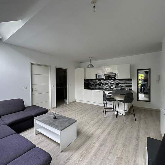 Très bel et agréable appartement 2 pièces loué meublé, au 2ème et dernier étage d'un immeuble en copropriété récent (2018) au 53 avenue Marcel Perrin à Mery-sur-Oise + Une place de parking en sous-sol dans résidence sécurisée au 35 avenue Marcel Perrin. Il vous offrira une entrée, une belle pièce de vie avec cuisine ouverte aménagée et équipée (hotte, four, plaques, réfrigérateur, lave-vaisselles, lave-linge, micro-ondes), une chambre de 11m2 avec placard et une salle d'eau avec WC. Vue verdoyante et bien dégagée. Appartement en parfait état...