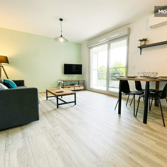 Discover our beautiful T2 of 42m2 located in Montbonnot in a Residence on the 2nd floor with elevator. This apartment comprises : - a living room with sofa bed, a fully equipped open kitchen opening onto a double terrace. - bedroom with 140 cm bed and storage space - a bathroom with walk-in shower and washing machine - a separate toilet The apartment has two sleeping areas: - a double bed in the bedroom - a sofa bed in the living room. Travel in comfort with kitchen equipment (fridge/freezer, oven, microwave, coffee maker), air conditioning,...