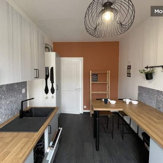 In the heart of the DMC district in Mulhouse, I am offering to let a charming 2-room flat of 49m2, fully furnished and equipped. It is located on the second floor out of 3 in a small town building, not overlooked. The flat was renovated in 2023 and comprises: - A large kitchen with plenty of storage space, a dining area/bar and all appliances, including microwave and dishwasher. - A highly functional bathroom, - A cosy living room with sofa and dining area, smart TV and a magnificent wooden floor - A large bedroom with 160 cm bed, desk and d...