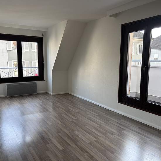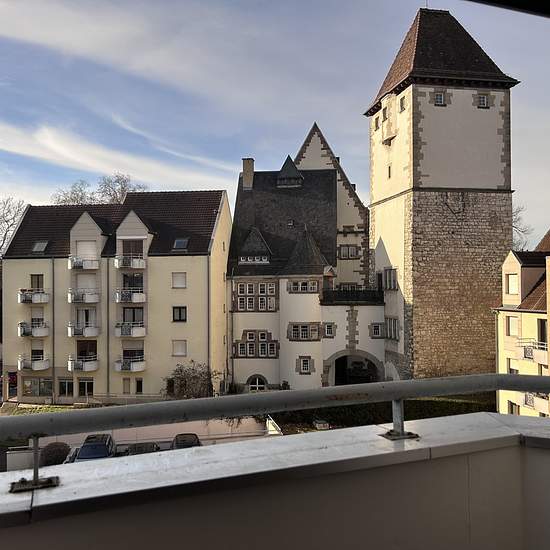 Mulhouse 36 grand rue, charmant 2 pièces de 54m2 dans un état impeccable, séjour 22m2 avec vue sur la Tour du Diable, chambre confortable, cuisine et salle de bain équipées, rangements, très calme et ensoleillé, une cave et un parking privé au sous sol. Libre tout de suite.