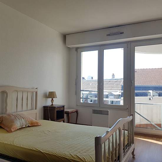 MULHOUSE CENTRE, rue de la Sinne A proximité de la gare, des rues commerçantes et transports Situé au 4ème étage avec ascenseur d'une résidente bien entretenue, spacieux appartement deux pièces d'une surface de 53.48 m². Comprenant: une entrée avec placard, une cuisine équipée semi-ouverte sur séjour avec balcon, une chambre avec accès balcon, une salle de bain avec baignoire, un wc séparé et un cellier. Avec garage en sous-sol. Eau chaude et chauffage individuels électriques. Loyer: 560.00 euros Provision sur charges: 80.00 euros Dépôt de g...