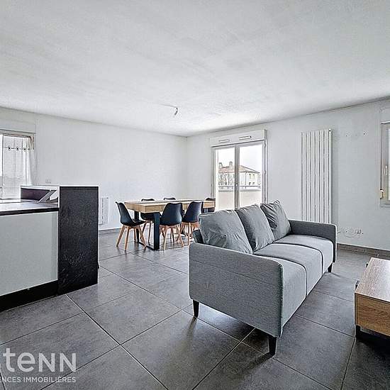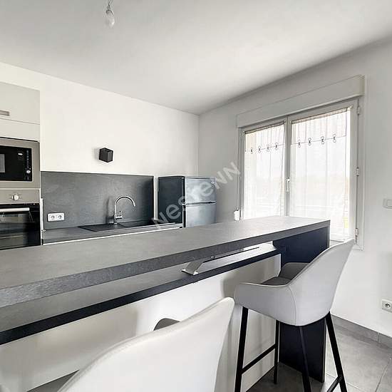 SECTEUR HOPITAL CENTRAL A découvrir, ce grand T2 meublé de 57m2 dans une résidence calme et sécurisée. De belles prestations avec un séjour/cuisine de 38m2 disposant d'un accès à une terrasse de 10m2. Le bien dispose également d'une chambre avec terrasse, d'une salle d'eau et d'un WC séparé. De grands placards sont également disponibles pour ranger vestes et affaires. La cuisine est équipée et aménagée avec four, frigo, micro-ondes, machine à laver, plaque électrique. La chambre dispose d'une penderie, le séjour d'une grande table permettant...