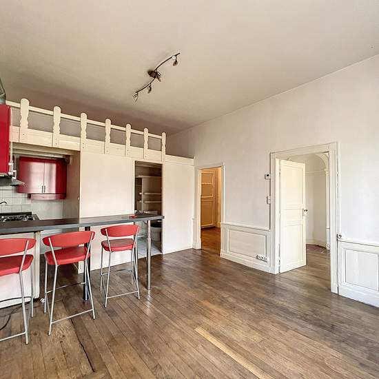 En plein centre de Nancy, entre la place à côté de ces lieux mityques tel que la place St. Epvre et la Place Stanislas, retrouvez ce joli T2 plein de cachet composé d'une chambre avec vu sur le quare Bichat, d'un séjour avec kitchenette ouvert et équipé et d'une superficie totale de 35m2, de quoi vous permettre d'occuper l'espace à votre convenance ! Montant estimé des dépenses annuelles des dépenses d'énergie pour un usage standard : 580 EUR et 840 EUR. Date de référence des prix utilisés pour établir cette estimation : 1er janvier 2021. 'L...