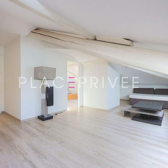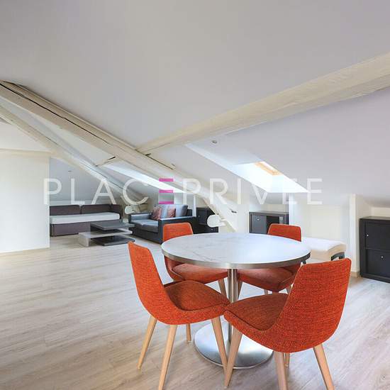 Nancy, Place d'Alliance - Loue appartement meublé avec terrasse. Sous les toits d'un immeuble d'angle du XVIIIe siècle, dans le carré d'or de Nancy, un appartement se cache comme un secret bien gardé, face à la célèbre place d'Alliance. Classée au patrimoine mondial de l'UNESCO, cette place dessinée par Emmanuel Héré à la demande du roi Stanislas rend hommage à l'alliance entre la France et l'Autriche. Plus intime que sa voisine la place Stanislas, elle séduit par son harmonie classique, son bassin orné de trois naïades et l'élégance paisibl...