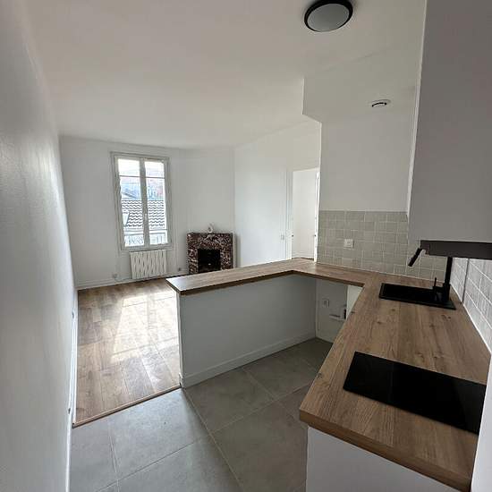 Bel appartement refait à neuf au 2ème étage d'un immeuble situé 202 rue Paul Vaillant Couturier, comprenant : séjour avec cheminée, chambre, cuisine aménagée et équipée (plaques électriques, hotte, four, frigo), salle de bains avec WC. Accès à La Défense en 15 minutes avec le BUS 141 à 3 minutes de l'appartement. Disponible dès le 3 janvier 2026 Copropriété de 15 lots ().