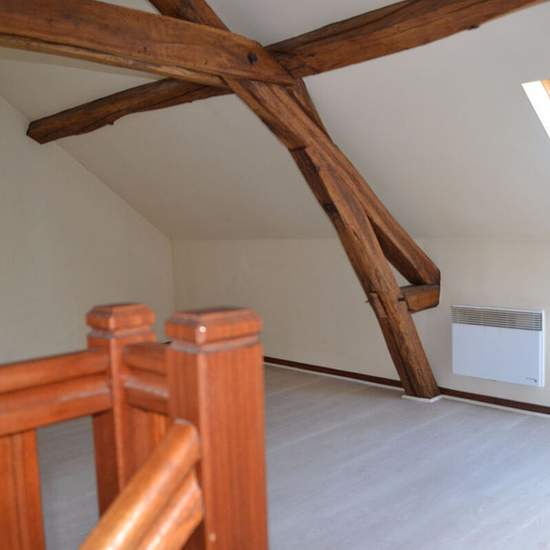Appartement à louer. Proche commodités, centre village, un appartement spacieux, type F2, 1er étage, en duplex comprenant une belle pièce à vivre avec coin cuisine, un cellier et un WC. A l'étage une chambre et une salle de bains.