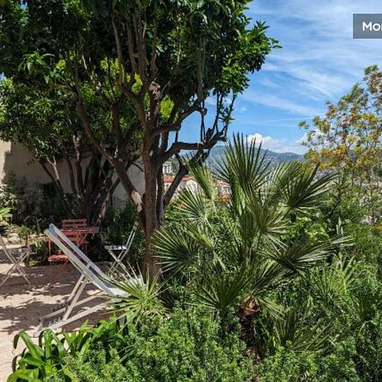 We look forward to welcoming you. (English speaking fellows are welcome too) In absolute peace and quiet, facing the rising sun, with a beautiful unobstructed view over Nice, this flat is completely unoverlooked. Access is via a separate gate. You can relax on the private terrace, in the shade of the orange trees, and enjoy part of the garden. It's a little corner of the countryside in the heart of the city. Located on the ground floor of our villa, built in 1925, and completely renovated in a contemporary style. The 30 m2 flat comprises a l...