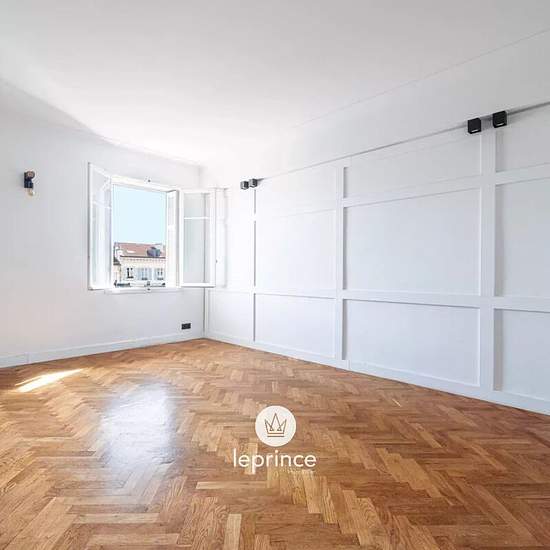Nice Carré d'or / Victor Hugo : Sur le boulevard Victor Hugo, dans un immeuble Art Déco avec gardien, superbe appartement 2 pièces de 38 m² loué meublé, entièrement rénové et situé au 4ᵉ étage avec ascenseur. Entrée, Vaste séjour lumineux exposé plein sud, sans vis-à-vis, avec belle hauteur sous plafond et parquet à bâtons rompus. Cuisine aménagée et équipée (LV, micro-ondes, réfrigérateur, plaques, hotte). Chambre en suite avec salle d’eau séparée par une verrière atelier, W.-C. indépendants, grand placard de rangements intégrés avec lave-l...