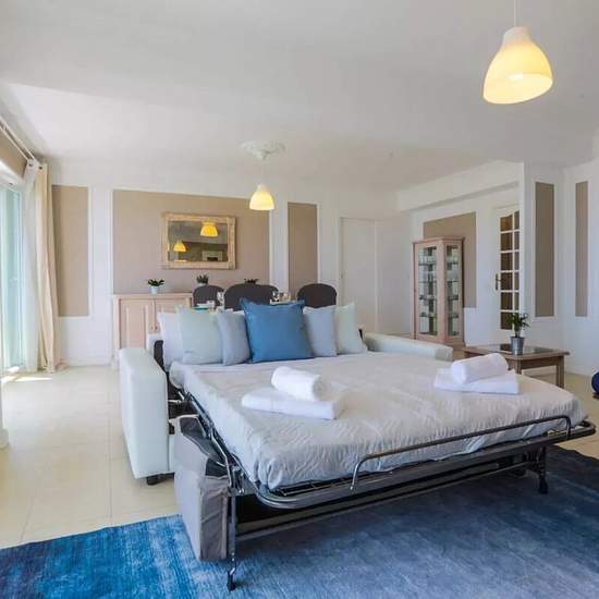 Situé sur la Promenades des Anglais au avant derniere etage ce grand 2 Piéces de 80 m2 est composé d'une entrée, cuisine separé équipée, double séjour exposé Sud avec 2 canapé lit, chambre traversant avec placard, salle des bains et Wc separé. chaufage Collectif ascenseur, Gardien