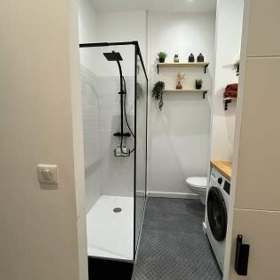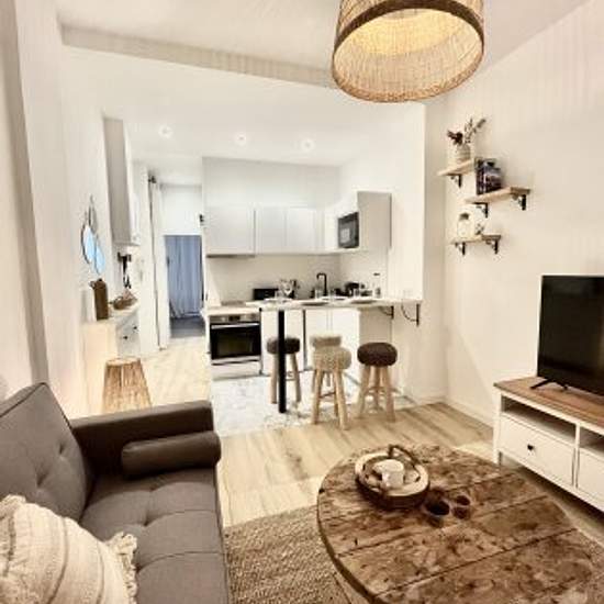 2 room apartment of 32m² on the ground floor, crossing, cosy, with a big height under ceiling, renovated and decorated with taste. Well equipped, double glazing, air conditioning. Tv 4k, Internet box, WIFI. Terrace overlooking a courtyard with table and chairs. Located in a shopping area, the old town and the port are 15 minutes away on foot. 6 minutes by streetcar. Nice Riquier train station at 2 minutes walk to visit the French Riviera! Sofa bed, which can be used as a single bed. TV screen 127 cm, if you have Netflix, Prime, etc... you ca...