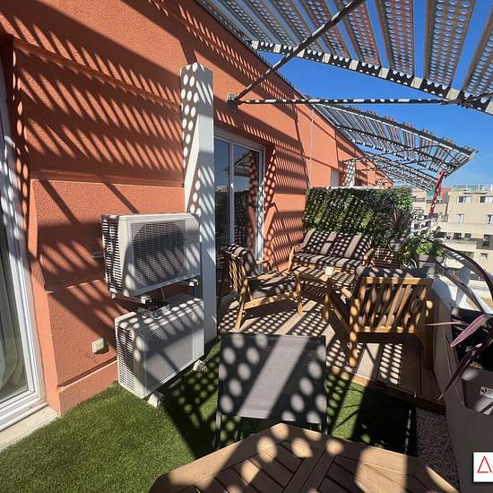 Contacter Maryse ou William, vos conseillers en immobilier ADELIMO, au Tél.: - EXCLUSIVITÉ - NÎMES (30) - av. de la Bouvine - résidence «Le Neptune», immeuble sécurisé, appartement T2 MEUBLÉ, avec place de parking en sous-sol, d'environ 48m², 4ème et dernier étage, ascenseur, offrant des volumes agréables, très lumineux, avec entrée, cuisine aménagée et équipée, salon / séjour avec accès sur la terrasse, 1 chambre avec également un accès sur la terrasse, salle d’eau / buanderie, WC séparé. Extérieur, une terrasse de 15m² bien exposée et amén...