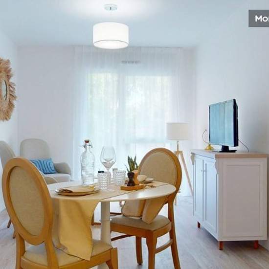 This absolutely exceptional new and tastefully decorated 50 m² flat is located on the ground floor of an extremely quiet and secure residence. The flat is very bright. It sleeps two people and includes a fully-equipped kitchenette (fridge, microwave oven, electric hob, coffee maker, kettle, crockery and kitchen utensils), a beautiful shower room with walk-in shower. Services included in rent & charges: Water Electricity Heating Services not included in rent & charges: Internet Parking The security deposit of 1190 € must be paid, before ...