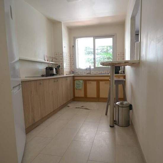 Appartement de 56 m² à louer sur Nogent-sur-Marne Bel appartement T2 de 56 m² meublé, dans un secteur résidentiel proche de RER A et bois de Vincennes, au 1er étage avec ascenseur. Il dispose d'une grande terrasse balcon sur verdure sans vis-à-vis. Entrée avec grands placards. Le séjour est aménagé avec un canapé lit, d'un fauteuil, d'une lampe sur pied, d'une table en bois et une grande télé 165cm. Une chambre avec un lit 140x190cm et un bureau avec une chaise de bureau. La cuisine est aménagée (évier et plan de travail, placards et tiroir ...