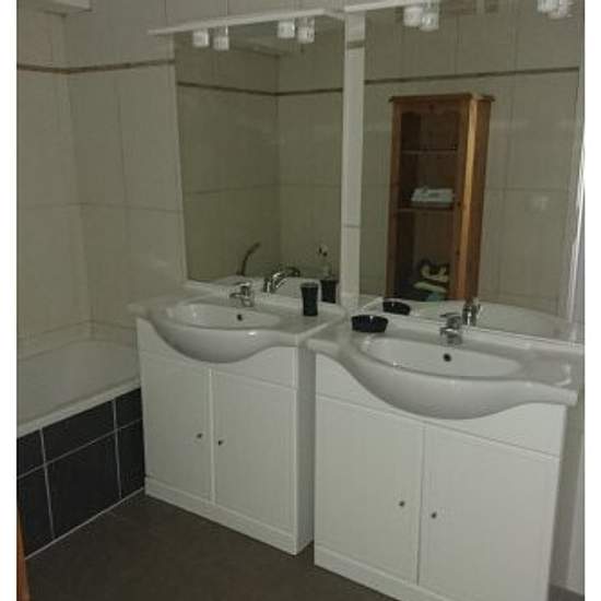 au centre d'Obernai, à proximité de tous commerces, grand F2 entièrement meublé. L'appartement se compose de la manière suivante : - une entrée avec penderie et rangement, puis une grande chambre à coucher disposant d'un lit double (140/200), une armoire de rangement, un espace bureau - un séjour avec deux canapés cuir, une table et 4 chaises, - une cuisine entièrement équipée (hors lave vaisselle) - une salle de bain avec double vasques, une baignoire et un sèche serviette - un wc séparé Chauffage au gaz Le logement se situe à 500m de la gare