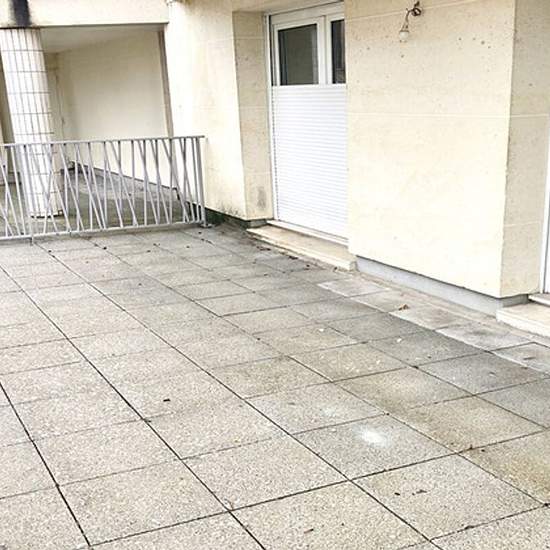 Résidence l'Esplanade, coeur de ville et RER à pied. 2 pièce en rez de chaussée avec terrasse. Entrée, séjour, une chambre, cuisine ouverte équipée, salle de bains, wc, cave et parking en sous-sol. Chauffage et eau chaude individuels électrique.