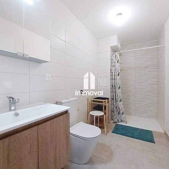 IMMOVAL vous propose : Rue Neuve, un charmant 2 pces meublé neuf de 38.80m² en rez-de-jardin avec parking privatif. Il se compose d'une entrée avec placard, d'une pièce de vie avec cuisine équipée ouverte, d'une chambre et d'une salle d'eau avec wc. Vous accédez par le séjour à une terrasse de 11.45m² avec l'usage d'un beau jardin de 79m². Parking extérieur privatif en annexe. Chauffage et eau chaude collectifs PAC. Disponible de suite. Honoraires de 504,40 € TTC à la charge du locataire comprenant 116,40 € TTC pour l'état des lieux. Loyer d...