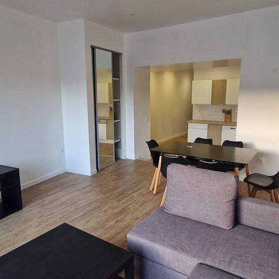 Appartement Meublé À Louer. Un appartement de type 2, en meublé, de 58 m² composé de : - Entrée, chambre, WC, salle d'eau avec accès MAL, cuisine aménagée et équipée (plaques, four et combiné réfrigérateur-congélateur), séjour, terrasse.