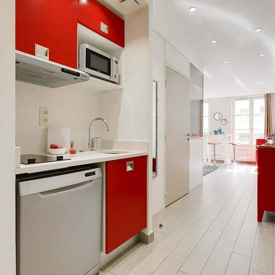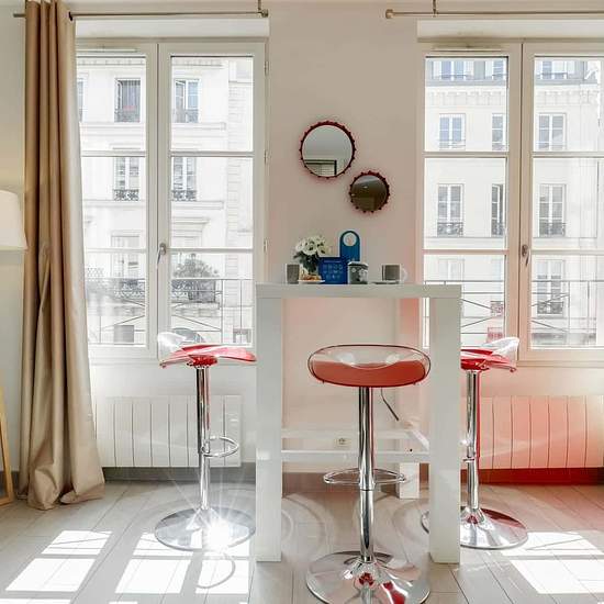 [EN] Located in the bustling second arrondissement, between Bonne Nouvelle and Porte Saint-Denis, the one-bedroom Saint Denis II Sweett apartment is as chic and contemporary as Paris herself. Inspired by the bold colours and clean lines of modern art, our local interior designer has filled this apartment with youthful energy. A fully equipped kitchen has everything you need for in-house dining. Explore the vibrant neighbourhood surrounding the apartment, where you can discover internationally acclaimed theatres and an overwhelming assortment...