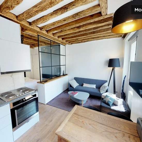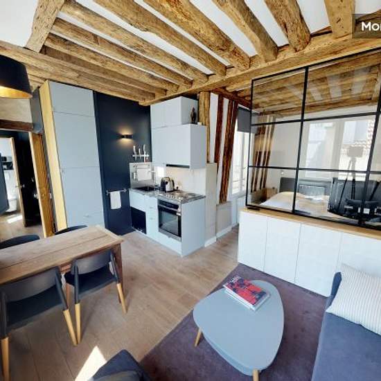 In the pedestrian Montorgeuil neighborhood, in the middle of shops and friendly, organic restaurants and cuisines of the world, just in front of the famous gym and restaurant Clay Club, in a building of the 18 th century, our apartment is on the 4th floor no lift. The apartment overlooks the impasse Saint Denis, it is facing South for most of the windows and has a clear view and is very sunny. Our apartment is composed of a bedroom with a double bed which is separated from the living area by a glass workshop. In the living area, there is a s...