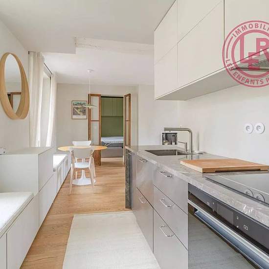 Bail code civil / résidence secondaire Idéalement situé, rue des Gravilliers, au cour du 3ème arrondissement, secteur recherché pour son dynamisme et sa centralisé, dans un bel immeuble sur cour, au 3ème étage, un très bel appartement de deux pièces meublé, ayant bénéficié d'une rénovation récente avec de beaux matériaux. Il se compose d'une entrée avec rangements, bel espace cuisine équipée, une belle pièce de vie traversante sur deux cours calmes, une chambre avec d'astucieux rangements et une salle de douche avec wc et lave-linge. État de...