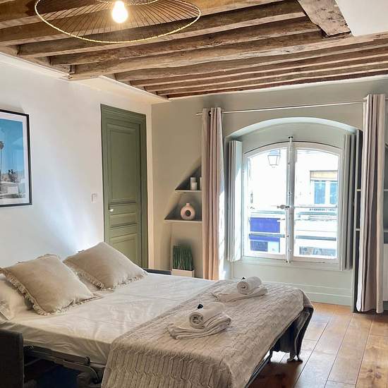 EN Dreamy Parisian Getaway: Stay in the Heart of Marais Embark on a quintessential Parisian adventure with a stay at our enchanting apartment! Nestled in the vibrant Marais district, this gem is moments away from Paris' iconic landmarks, exquisite cafés, and rich history. An extraordinary location invites you to immerse yourself in a unique residential experience in the heart of Paris. The Space: Prime Location: Situated in the lively IIIᵉ arrondissement, you'll be within strolling distance of Paris' most captivating sights. Parisian Eleganc...