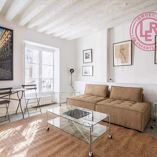 Au cour du Haut-Marais, face à l'Hotel salé (Musée Picasso), aux 3ème et 4ème étages d'une petite copropriété, un bel appartement de deux pièces en duplex bénéficiant de beaux matériaux. Il se compose d'une pièce avec deux fenêtres en exposition Est et une cuisine séparée équipée. Un escalier permet d'accéder au 4ème étage sur lequel se trouve une belle suite avec dressing, salle de bains et wc.