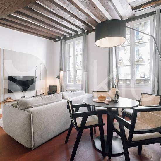 Splendide appartement rénové et meublé situé Rue du Petit Pont, dans le quartier de Notre Dame. Il est situé au 2ème étage et se trouve à proximité des stations Saint-Michel Notre-Dame et Cluny La Sorbonne. Dans les environs, on peut trouver des attractions telles que Cathédrale Notre-Dame de Paris, Fontaine Saint-Michel, Église Saint-Séverin et Sainte-Chapelle. Il est composé d’une chambre à coucher avec un lit double et une salle de bain, d’une cuisine et d’un séjour avec sofa-lit. Le lit est équipé d'une literie douce, idéale pour un bon ...