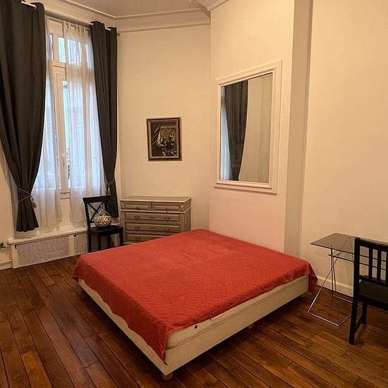 Disponible début janvier ? "Comme une maison" dans un très bel immeuble Art-Nouveau, au rez-de-chaussée sur la cour, un appartement de deux pièces meublé, composé d'une entrée avec placards, un séjour, une cuisine indépendante, une chambre, une salle de bains avec douche, un wc indépendant. Très grande hauteur sous plafond, très beaux volumes. Chauffage et eau chaude collectifs, Digicode, Interphone, Gardienne sur place. Copropriété particulièrement bien entretenue, appartement très propre, meubles neufs. Attention : - Pas de colocation étud...