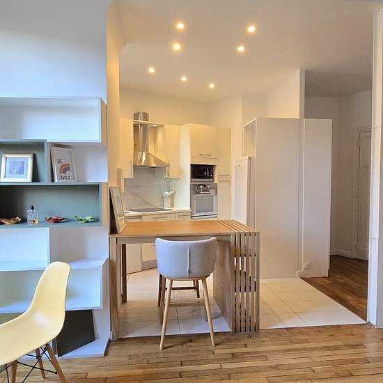 Rue de Rennes et à proximité de la Tour montparnasse et des commerces, Quod et Associes vous propose un appartement enterièment rénové à louer meublé. Situé au 3 ème étage par ascenseur d'un immeuble sécurisé de 1910, cet appartement de 47m² se compose d'une entrée avec rangements, un séjour donnant sur une belle vue et cuisine américaine équipée et aménagée. Une chambre sur cour avec de nombreux rangements, une salle d'eau et water closet. Chauffage et eau chaude collectif Appartement libre immédiatement Honoraires de location Bail Code Civ...