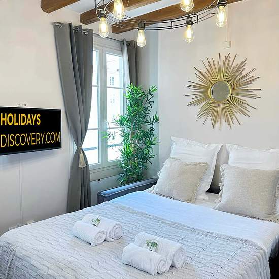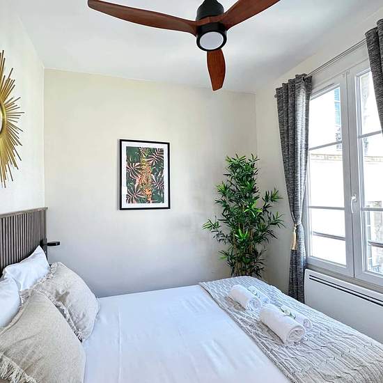 EN Discover the magic of Paris from our contemporary apartment, perfectly positioned just steps from iconic landmarks like the Eiffel Tower, Trocadero, and Invalides. Start your day with stunning views of the Eiffel Tower, making your Parisian stay truly unforgettable. Enjoy an exclusive residential experience in one of the city’s most prestigious neighborhoods. The Space: Space to Unwind: Relax in our cozy room featuring a queen-size bed (200x160) with a plush mattress, ensuring you have a restful night's sleep. Pack Light & Feel at Home: W...