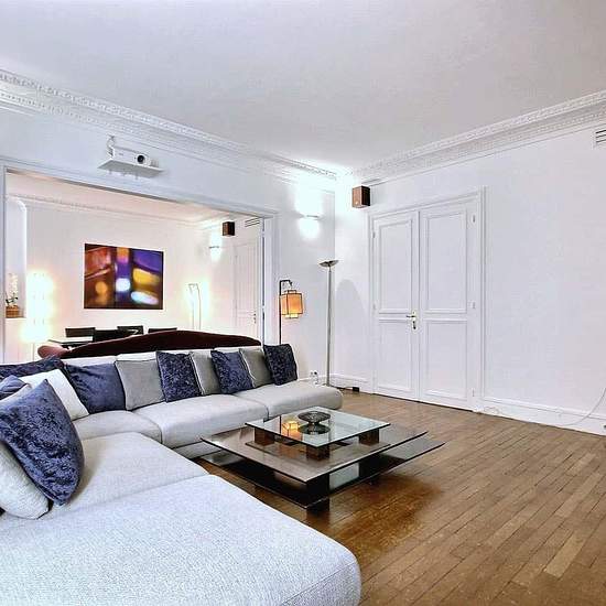 [FR] Cet appartement de 140 m² , 3 pièces, est situé rue Arsene Houssaye dans le 8ème arrondissement , au 3ème étage d'un immeuble du 19ème siècle et il peut accueillir 5 personnes. Cet appartement est équipé avec : un lave linge séchant, un lave-vaisselle, les chaines cablées, la télévision, un accès internet haut débit illimité, un téléphone, un lecteur DVD, home cinema, Air Conditionné. L'immeuble du 19ème siècle est équipé avec : un ascenseur, un code d entrée, un interphone, une concierge. [EN] This 140 m², 3-room apartment is located r...