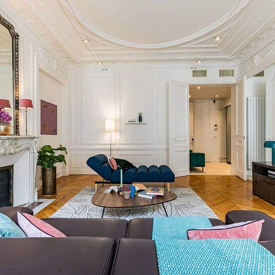 [EN] In the prestigious Champs-Elysées neighbourhood, the cosy one-bedroom Cerisoles E Sweett apartment immerses you in Parisian glamour. Our local interior designer has transformed this apartment into a comfy place to revitalize. Huge windows and cushy furniture will make you feel at home, and a combination of antique parquet flooring and modern decor captures the Parisian contemporary style. The fully equipped kitchen has everything you need for an at-home feast. Immerse yourself in the lavish surroundings of the VIIIth arrondissement, whe...