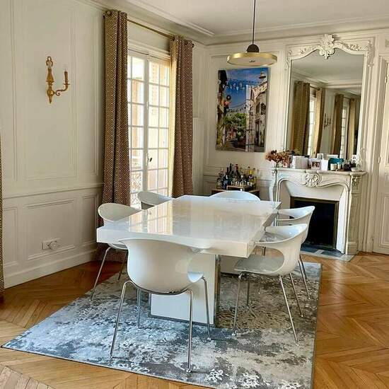 Luxury 2-bedroom furnished Haussmann style apartment for rent in the 8th arrondissement of Paris. Quiet and cozy apartment - a great housing option for a family. 4th floor of the building with elevator, windows overlooking the courtyard, large windows, luxury interior with elegant design and modern furniture, herringbone parquet, marble bathroom, stucco on the walls and ceilings. The apartment consists of: entrance hall, living/dining room, two spacious bedrooms with fitted closets, bathroom and shower room, fully equipped kitchen (washer/...
