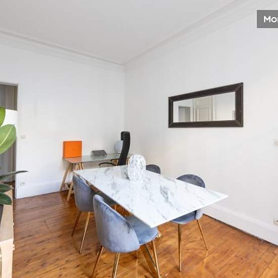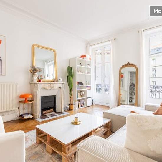 Take advantage of our large, typically Parisian flat (mouldings, fireplace, original parquet flooring) with high ceilings (4.5 m throughout). Each room (bedroom, study, living room, kitchen, bathroom) has a balcony and a 2-metre-high double window. Seven double windows in all. Exceptional light. Ideal location (just opposite the Cadet metro station in the 9th arrondissement, rue Le Fayette). We live here most of the year, so the flat is perfectly equipped and decorated (including exceptional bedding with king-size bed, home cinema, Devialet ...