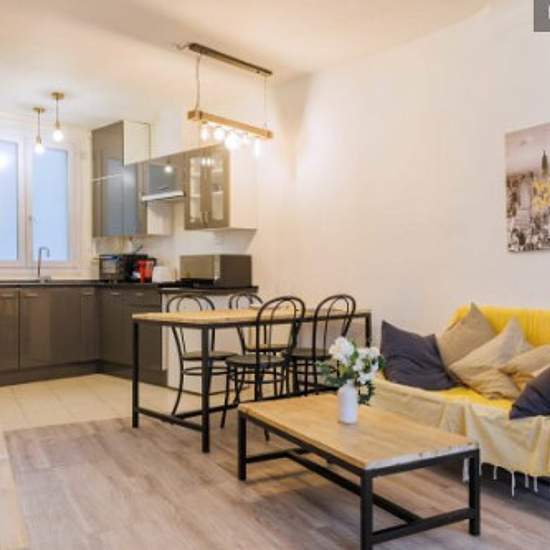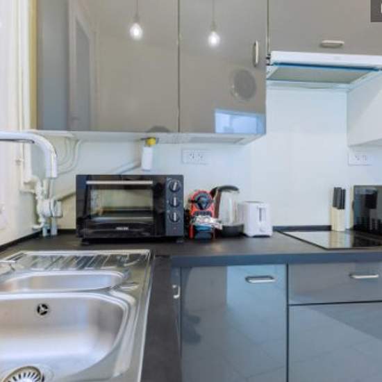 Appartement de 39m2 située au 1er étage (sans ascenseur) en plein coeur du 10ème arrondissement de Paris. Dans un des quartiers les plus animés de Paris vous trouverez nombreux restaurants, bars, à deux pas de l'appartement. Il se compose de: - Une cuisine ouverte équipée et fonctionnelle : frigidaire, plaques de cuisson, machine à café, grille-pain, bouilloire, four, micro-onde... - Un salon avec une table à manger, un canapé et une TV - Une chambre avec lit double - Une salle d'eau avec douche et lavabo - WC séparés avec lavabo et lave-lin...