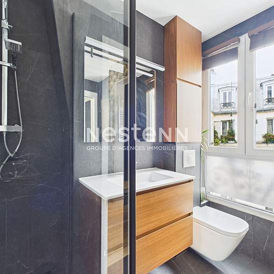 Dans une rue Calme récemment aménagée en sens unique et arborée située en toute proximité de la Gare du Nord, NESTENN PARIS 19 et MONTMARTRE vous propose ce beau deux pièces loué MEUBLE en très bon état avec des équipements récents. Au cinquième étage avec ascenseur d'une belle copropriété parfaitement entretenue et sécurisée, il comprend une entrée, un cagibis avec une machine à laver séchante , une salle de douche et les water-closets , une cuisine semi ouverte aménagée et équipée , une chambre au calme sur cour avec de grands rangements e...