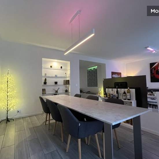 105m2 flat renovated like a loft on the 1st floor of a Haussmanian building. 2 bedrooms each with a large backlit dressing room (one of 12m2 and one of 16m2) in a quiet location overlooking courtyards, a bathroom, a shower room in the master bedroom, separate toilet. Double and triple glazing. Underfloor heating. Philips hue light fittings for changing colours and intensities by smart phone. Fibre optic internet access. Utility room. Fitted kitchen, full height fridge, separate freezer, oven, microwave, induction hob, extractor hood. Large l...