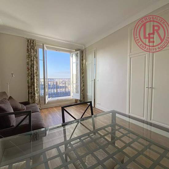 Au 7 ème étage d'une jolie copropriété très bien tenue des années 30, avec gardienne, local vélo et ascenseur, un appartement de deux pièces meublé ayant bénéficié d'une rénovation récente. Il se compose d'une entrée desservant une très belle pièce de vie avec accès à un balcon filant offrant une vue dégagée exceptionnelle, sans aucun vis-à-vis, sur de nombreux monuments (Tour Eiffel, Sacré-Coeur, La Défense, Panthéon), une cuisine séparée équipée, une chambre avec rangements et une salle de douche avec wc. L'appartement bénéficie d'une lumi...