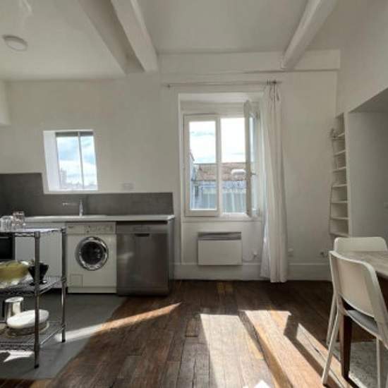 Loue 2 pièces meublées à Paris 14ème rue Campagne Première. Au cinquième et dernier étage sans ascenseur, appartement équipé. Lave-linge sèche-linge, lave vaisselle, réfrigérateur, four combiné, plaque vitrocéramique, 1 lit 140x200 (mezzanine 1ère pièce), 2 lits 90x200 (chambre). Electricité + abonnement fibre optique en sus. Updated on 09/12/2025 Mise à jour le 09/12/2025