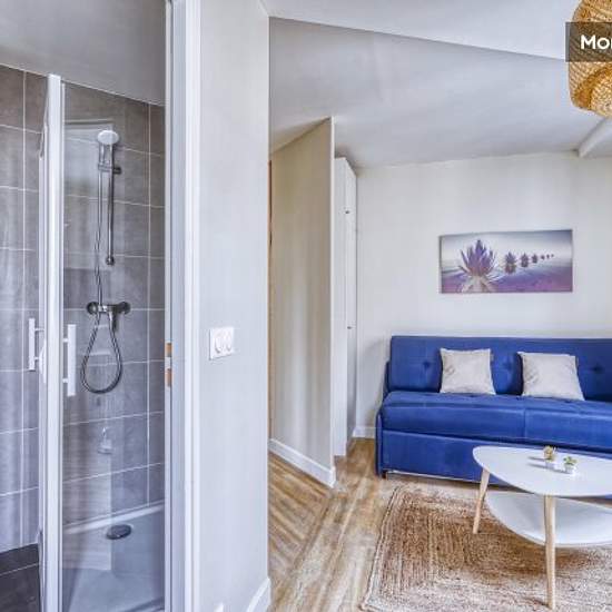 Pretty studio of 19 m2 redone with sofa bed On the 2nd floor without lift rue Edouard Jacques Gaîté Pernety district just a stone's throw from Montparnasse, Paris 14th district Fully equipped to make you feel right at home, enjoy a sleeping area with a comfortable sofa bed, storage space for your personal belongings, an open kitchen with its bar, TV, wifi internet and a shower room with washing machine. Services included in rent & charges: Water Electricity Individual gas Heating Internet The security deposit of 1000 must be paid, before ...