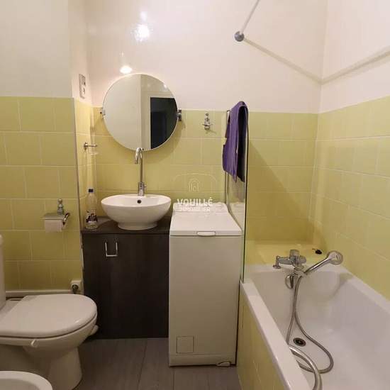 Nous avons un coup de coeur pour ce bel appartement de 2 pièces principales, très agréable à vivre, que nous louons en meublé. Il se situe dans un immeuble récent "années 1970" de bon standing, au neuvième et dernier étage. il est doté d'un très bon plan avec une entrée avec placard, une cuisine, un séjour exposition Ouest sur rue donnant sur un grand balcon avec une vue dégagée, une chambre sur cour exposition Est avec balcon, une salle de bain avec toilettes. La copropriété propose de nombreux services avec gardien, ascenseur, chauffage et...