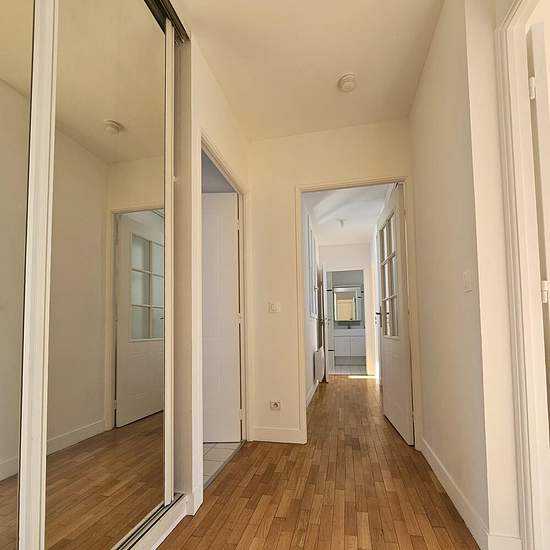 DEUX PIECES de 50,85m² coté cour intérieure au 6ème étage avec ascenseur dans un immeuble cossu au 14 rue Mesnil, proches transports et commerces. Il est composé d'une entrée avec placard, un séjour, un dégagement avec placard, une cuisine indépendante, une chambre, une salle de bains et un WC indépendant. Une cave et une place de parking en sous-sol.