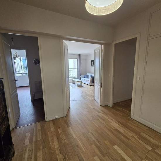 Dans un bel immeuble avec gardien et ascenseur, un appartement 2 pièces de 72,30 m² loi Carrez, donnant sur le jardin de la copropriété. Il est composé d'entrée avec placards intégrés, séjour sur le jardin, cuisine équipée indépendante, grande chambre, salle de douche avec wc, plus 2e wc indépendant avec lave mains. Le plus: de nombreux rangements.