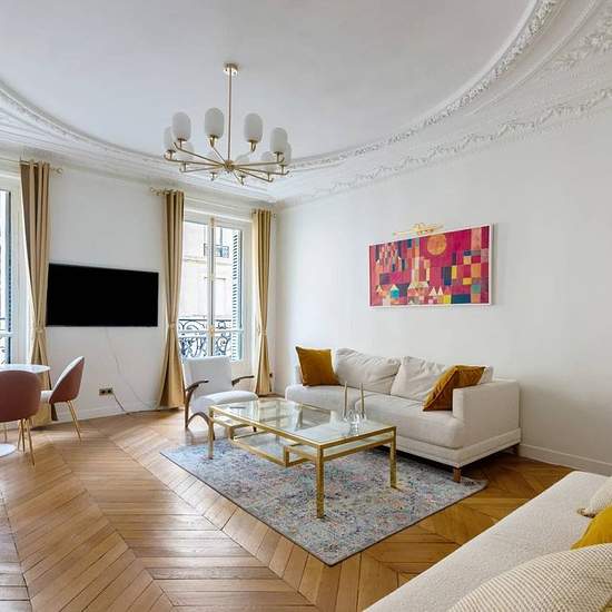 Disponible immédiatement – Bail code civil À deux pas des Champs-Élysées, au 2e étage avec ascenseur d’un immeuble haussmannien, appartement meublé de 63,2 m² entièrement rénové. Il se compose d’un séjour lumineux avec cuisine semi-ouverte équipée, d’une chambre avec placards et salle d’eau en suite, d’une seconde salle d’eau avec WC, et d’un balcon exposé est. L’appartement est équipé de la climatisation. Local à vélos. Chauffage inclus dans loyer. Loyer : 4 354 € / mois Charges : 354 € / mois