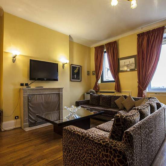 Luxury apartments of 106 m2, located on the Boulevard Suchet in the 16th district of Paris. Apartments have a huge hall, large living room with a comfortable sofa (transforming to a bed) and a nice coffe table, spacious dining room, two bedrooms with double beds, two bathrooms (one - with a bath, another one - with a shower), fully equipped kitchen with a bar counter (fridge, cooker, freezer, oven, microwave) Great transport accessibility: 5 minutes from the metro station La Muette (line 9), bus stop (buses 32, 52, 63) Parking is possible.