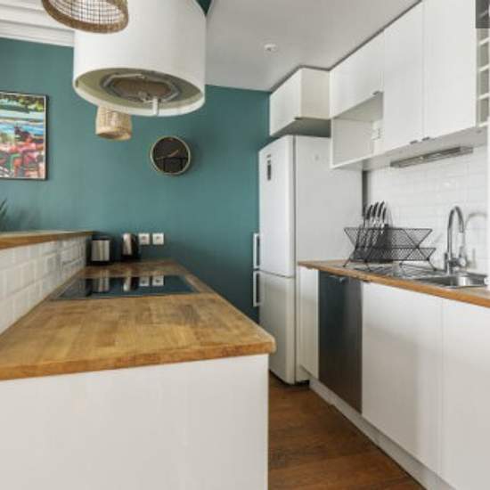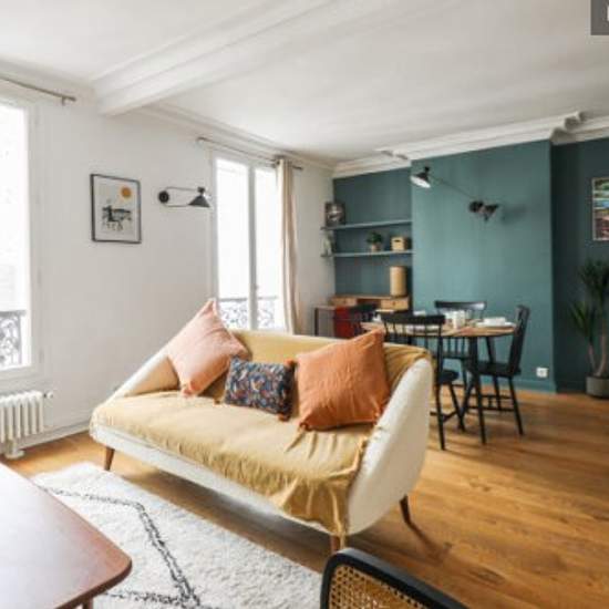 Situé dans le village des Batignolles, à deux pas de Montmartre, ce très bel appartement lumineux est idéal pour accueillir 2 personnes. Proche de commerces et des transports, dans un quartier animé et apprécié des parisiens, ce logement est parfait pour un séjour dans la capitale. Ce très bel appartement de 48 m², décoré avec goût, est situé au 4ème étage sans ascenseur et est composé de : - un grand salon chaleureux et lumineux, - une chambre avec lit queen size (160 cm), - une cuisine ouverte très bien équipée (machine à café, grille-pain...