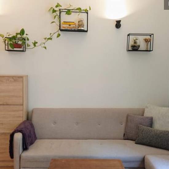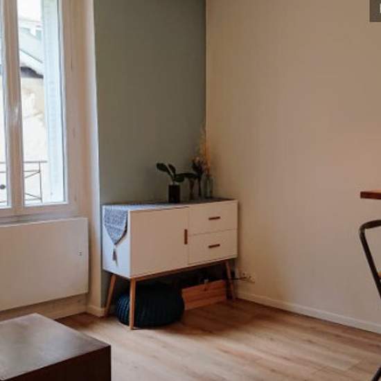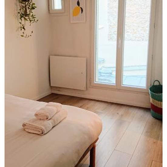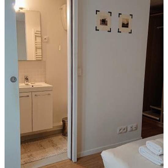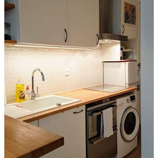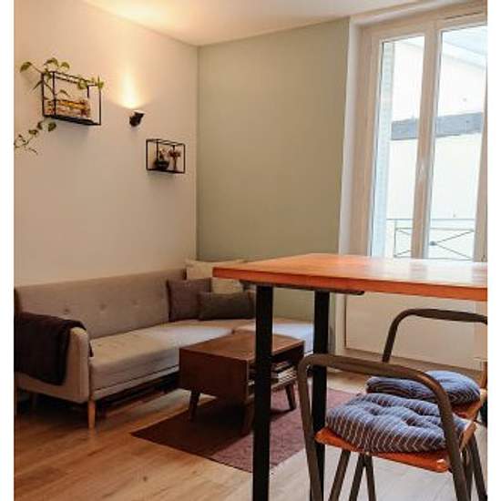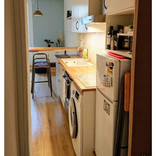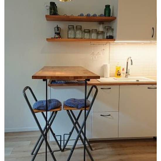L'espace de vie ouvert est très confortable et accueillant. Votre appartement est situé dans une cour intérieure calme. Il y a un bureau qui pourrait être utilisé comme un endroit parfait pour installer votre ordinateur si vous avez besoin de travailler. La fenêtre du salon est dotée de volets extérieurs si vous souhaitez avoir plus d'intimité. Le bar-restaurant est situé à côté du comptoir de la cuisine. Les propriétaires aiment cuisiner avec des ingrédients frais qu'ils achètent sur la rue du marché de Lévis. Il y a de nombreux équipements...