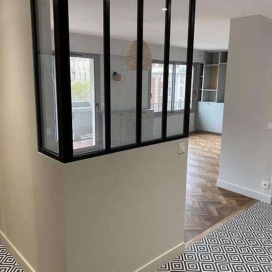 RUE GUERSANT - Location Vide. 2 Pièces de 55m² + balcon au 5ème étage avec ascenseur d'un immeuble récent de bon standing avec gardien. Appartement joliment rénové comprenant: entrée avec nombreux placards, salon avec cuisine semi-ouverte équipée, une chambre avec placards intégrés, salle d'eau avec douche à l'italienne, wc séparés avec lave mains, Chauffage et eau chaude collectifs. Cave en sous-sol.